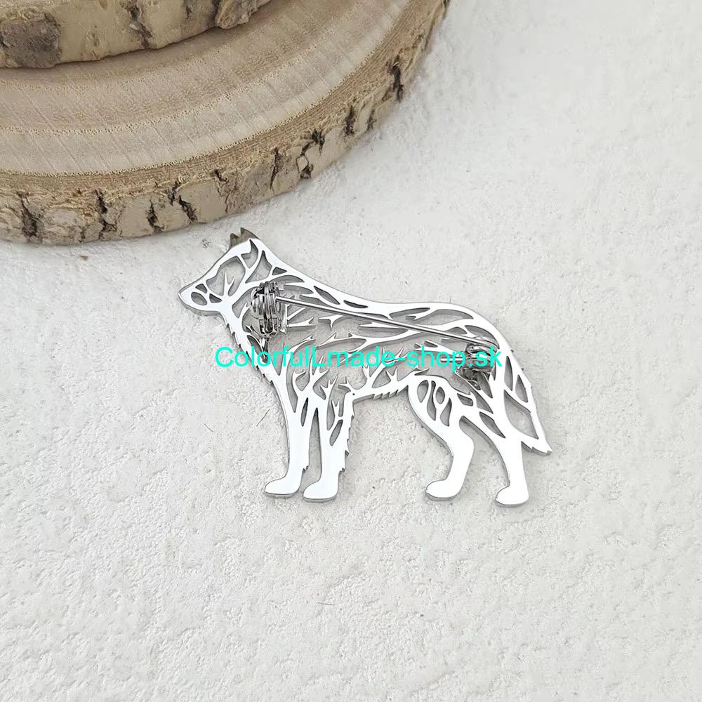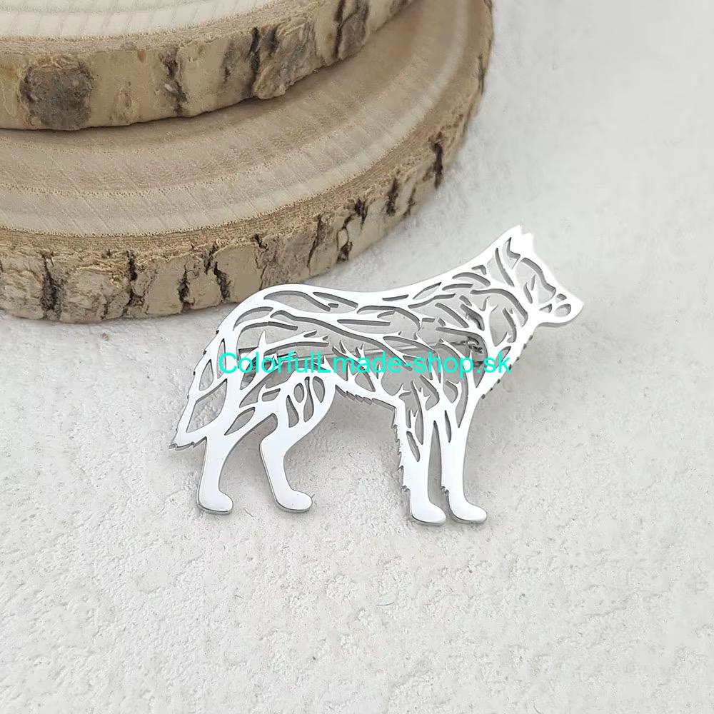 Brošňa kovová vlk - strieborná