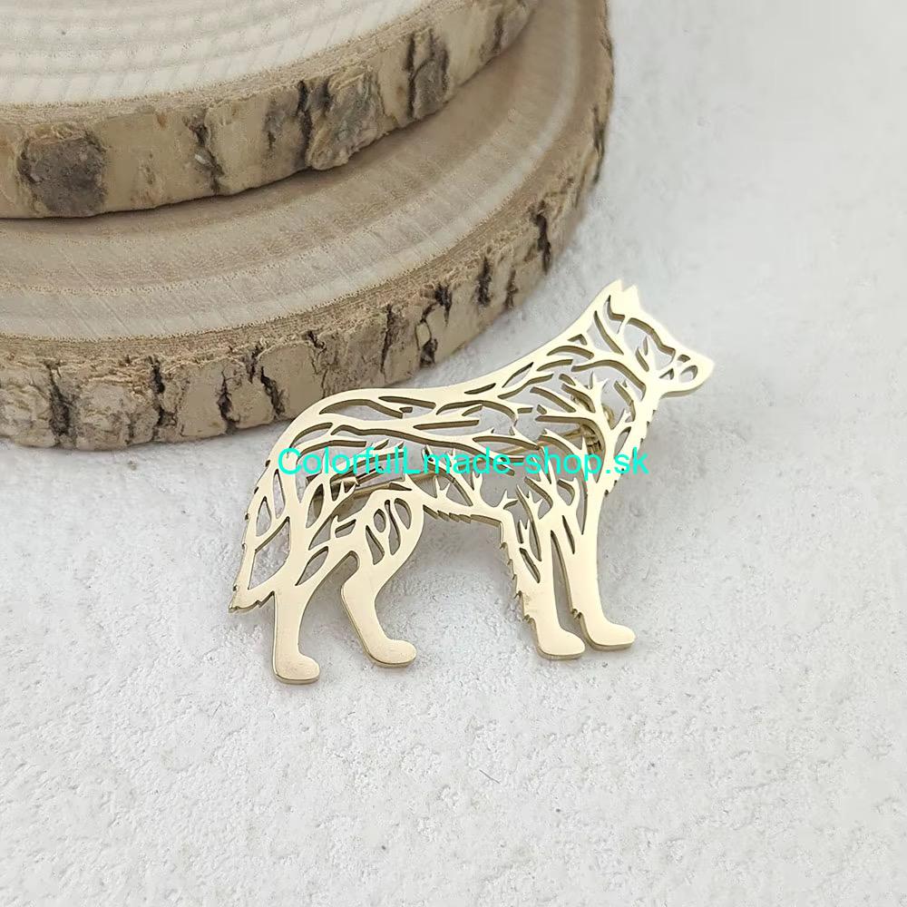 Brošňa kovová vlk - zlatá