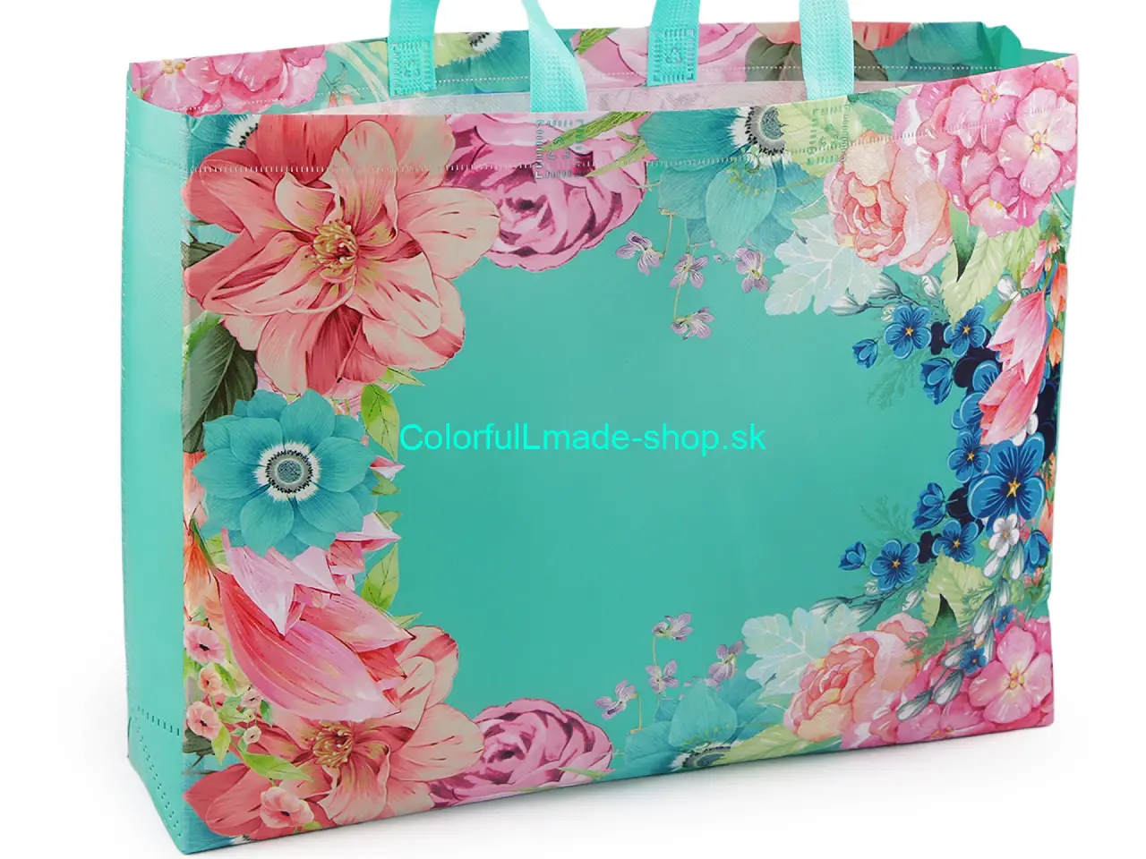 Do veľkej tašky z laminovanej netkanej textílie s potlačou naukladáte veľa vecí. Má dve uchá, skvele sa zloží napríklad do kabelky. Vďaka opakovanému používaniu je šetrná k životnému prostrediu, stále častejšie nahrádza igelitové tašky. Hodí sa na reklamné účely. Nie je určená na ťažké nákupy.