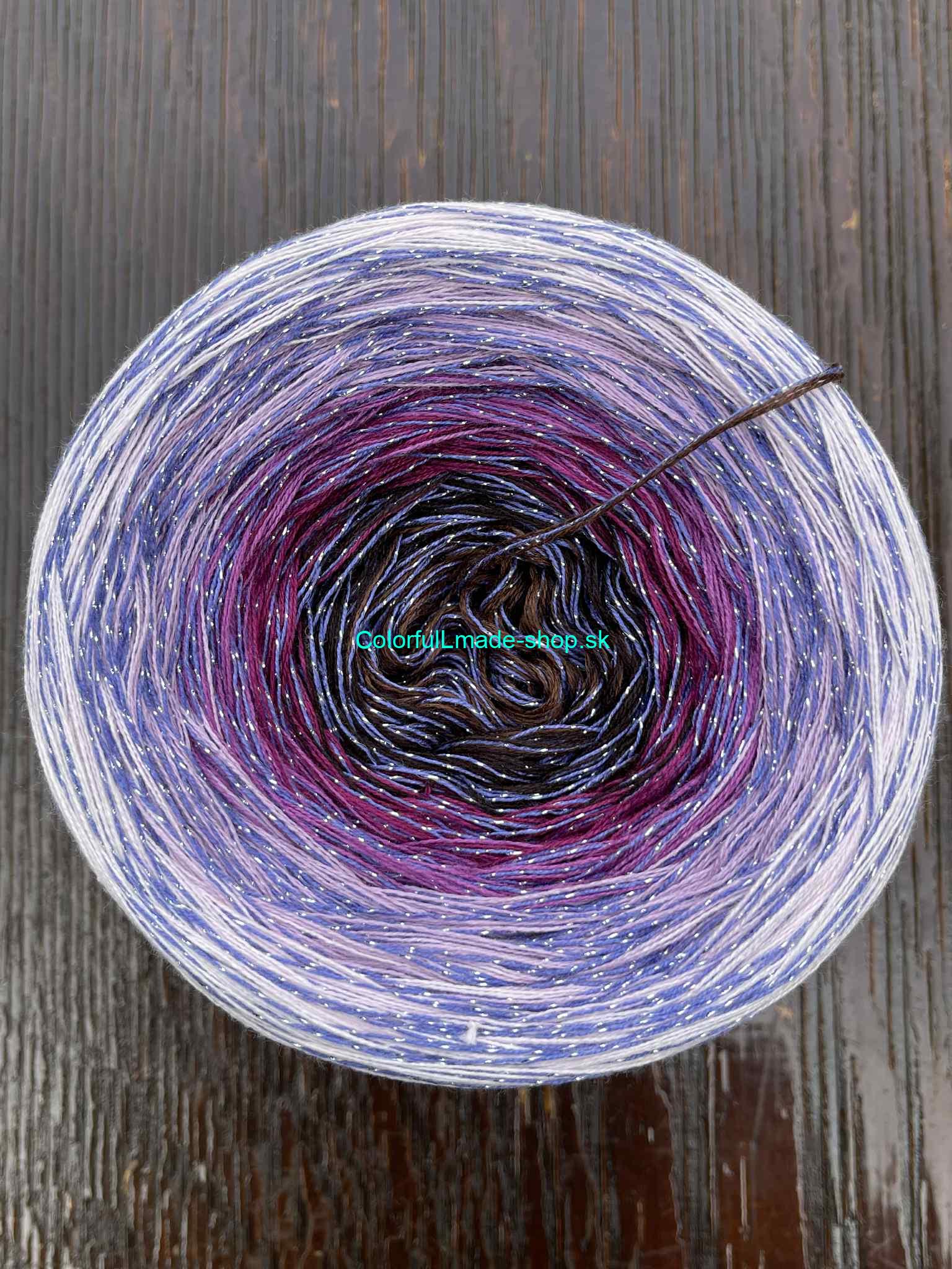 Rainbow GLITZ sú klbká navíjané špeciálne spolu s osobitnou nitkou uni farby s obtočenou glitrovou niťou po celej dĺžke klbka