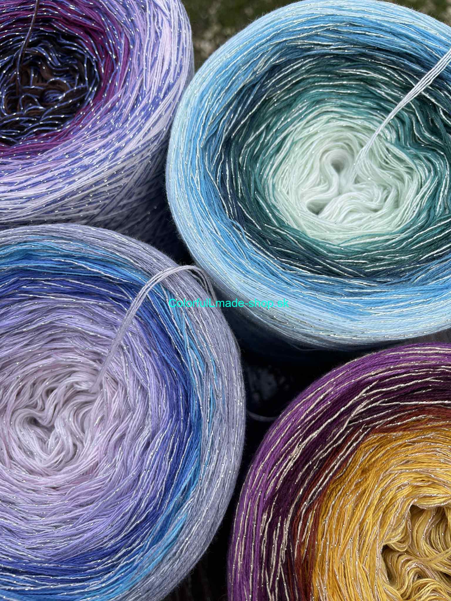 Rainbow GLITZ sú klbká navíjané špeciálne spolu s osobitnou nitkou uni farby s obtočenou glitrovou niťou po celej dĺžke klbka