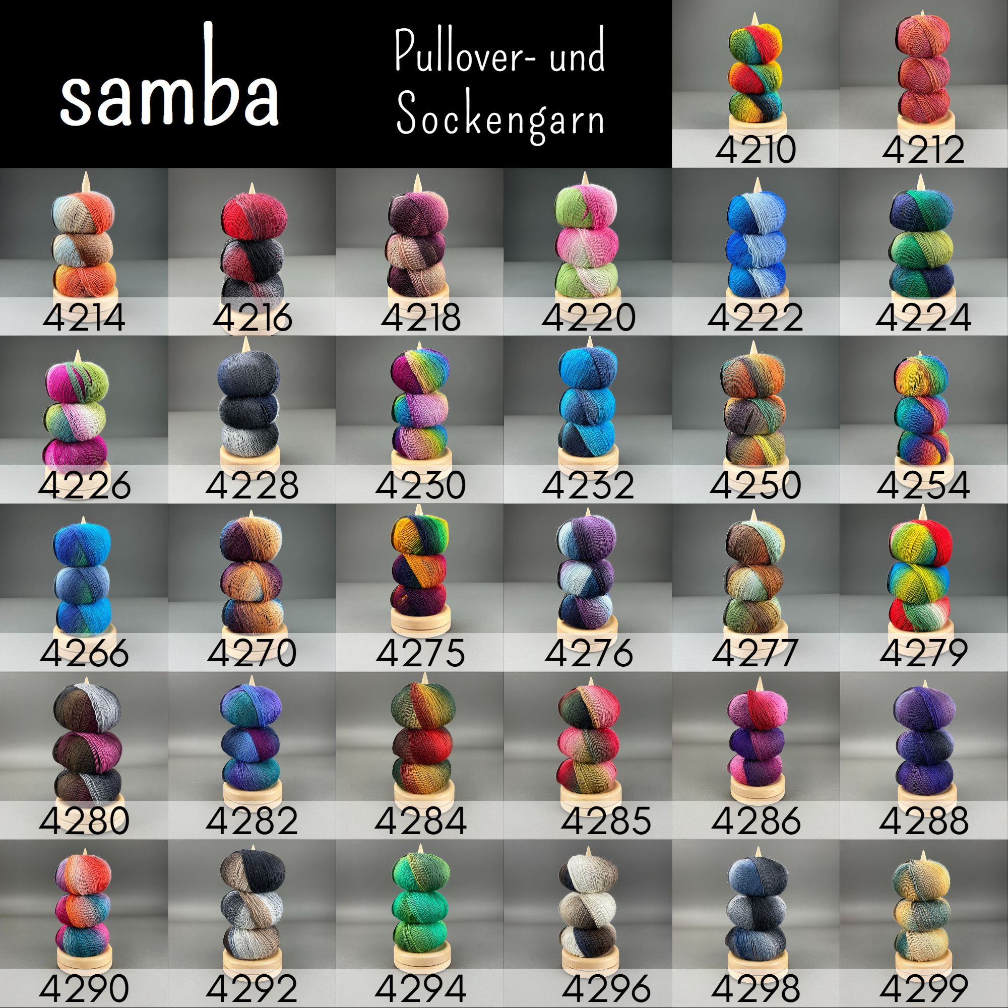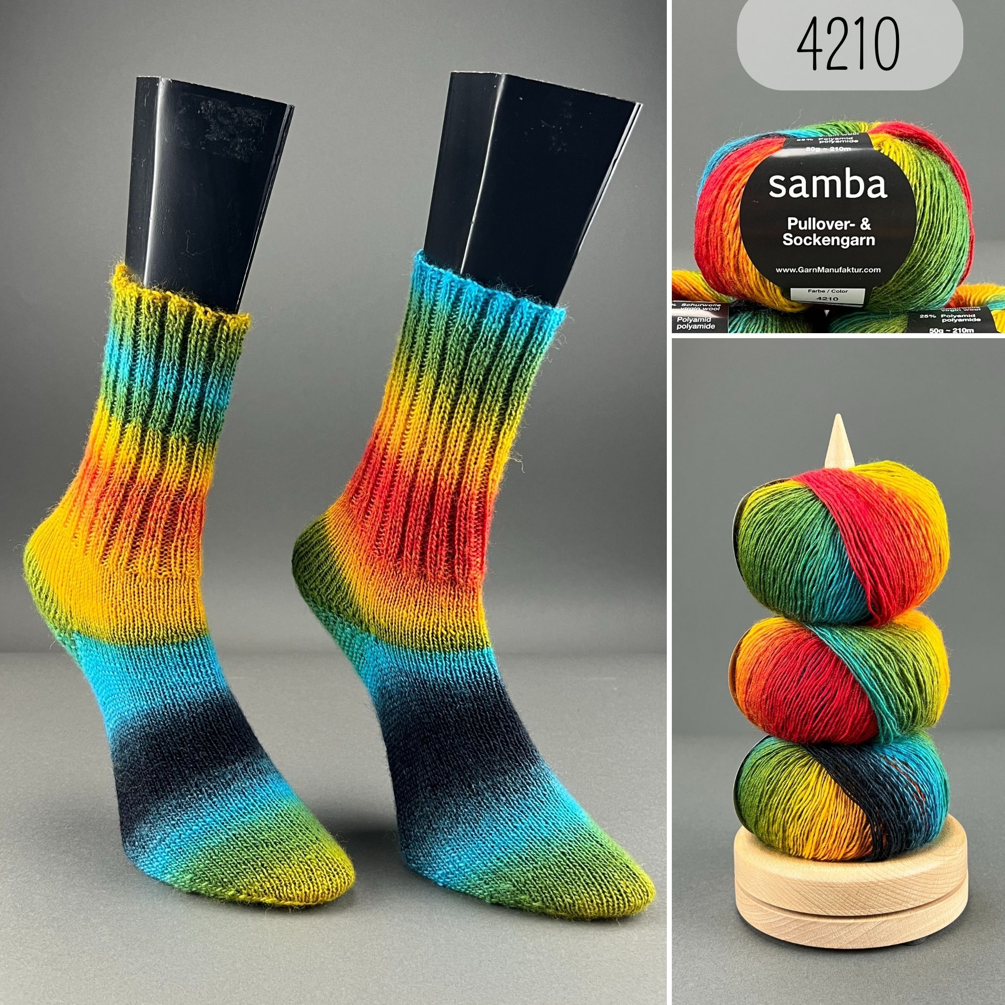 Jednovrstvová efektová priadza s farebným gradientom na svetre, ponožky a doplnky.