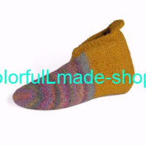 Made of 100% mulesing-free wool, you can create two identical, warm, comfortable and fashionable slippers from a single ball of yarn. The combination of single colours and multicoloured stripes makes each pair of slippers unique and original. The warm shades add liveliness and personality. Its special untreated fibre is resistant to felting and water and makes this yarn suitable for fashion accessories as well as small home decor projects.