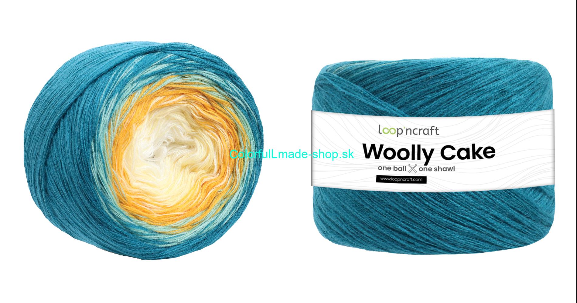 Woolly Cake je jednou z unikátnych priadzí v prémiovej kolekcii Loop'ncraft. Umožňuje vám vyrobiť trojuholníkový šál z jedného klbka. Každá 200g rolka je vyrobená z krásnych prechodových farieb a stačí na výrobu krásneho zimného šálu.