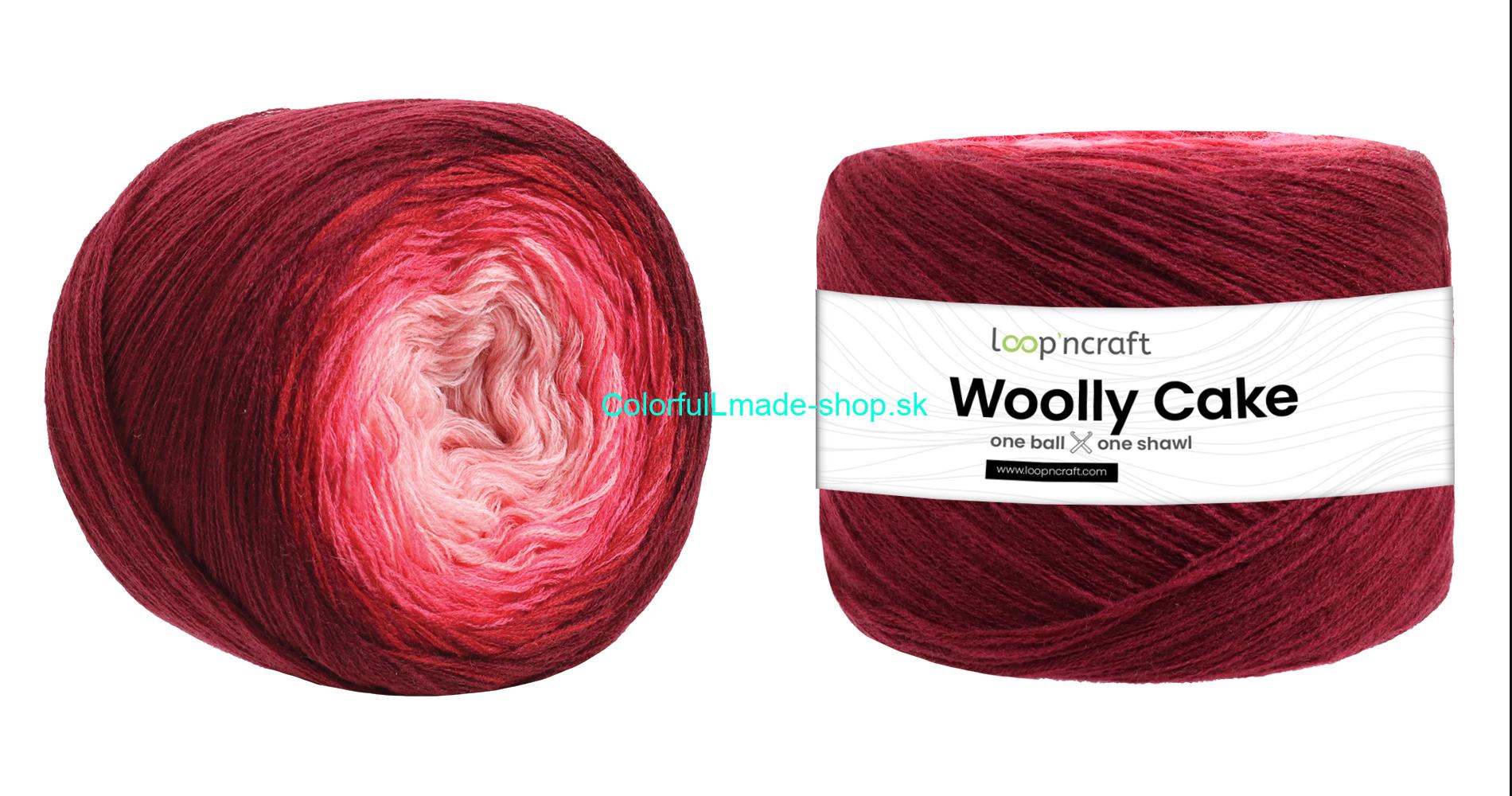 Woolly Cake je jednou z unikátnych priadzí v prémiovej kolekcii Loop'ncraft. Umožňuje vám vyrobiť trojuholníkový šál z jedného klbka. Každá 200g rolka je vyrobená z krásnych prechodových farieb a stačí na výrobu krásneho zimného šálu.